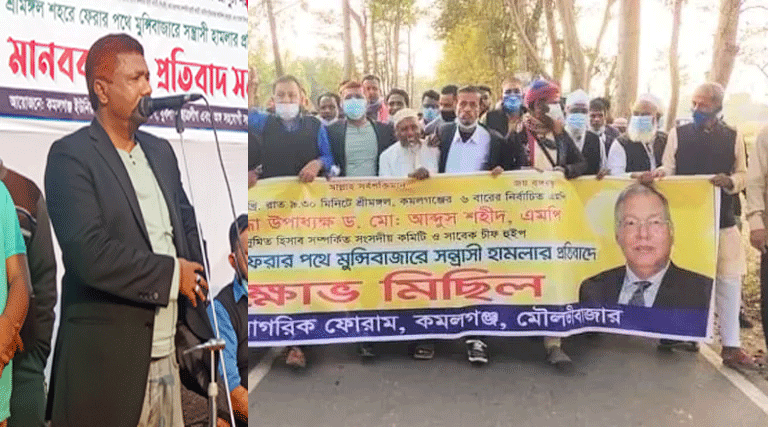 কমলগঞ্জে সাংসদের ওপর হামলার প্রতিবাদে বিক্ষোভ