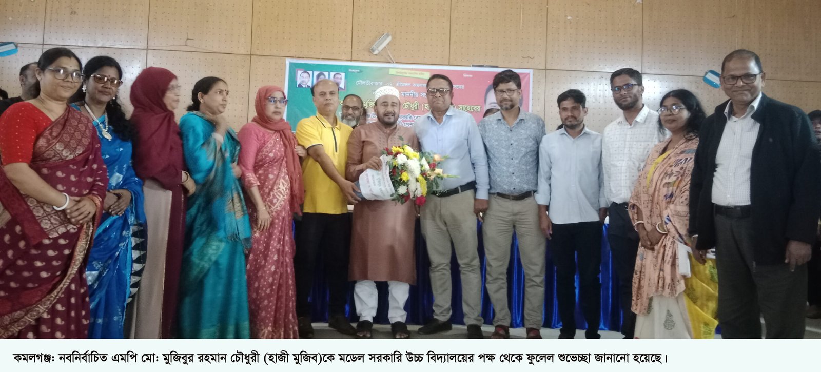 মৌলভীবাজার-৪ (শ্রীমঙ্গল-কমলগঞ্জ) আসনের নবনির্বাচিত এমপি মো. মুজিবুর রহমান চৌধুরী (হাজী মুজিব)কে ফুলেল শুভেচ্ছা ও সম্মাননা জানানো হয়েছে। সোমবার বিকেলে কমলগঞ্জ উপজেলা চৌমুহনাস্থ জেলা পরিষদ অডিটরিয়ামে এ আয়োজন করা হয়।