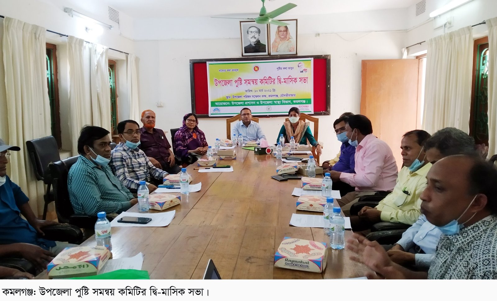 “খাদ্যের কথা ভাবলে, পুষ্টির কথা ভাবুন” এই প্রতিপাদ্যকে সামনে রেখে বহুখাতভিত্তিক পুষ্টি কার্যক্রম বাস্তবায়নে মৌলভীবাজারের কমলগঞ্জ উপজেলা পুষ্টি সমন্বয় কমিটির দ্বি-মাসিক সভা অনুষ্ঠিত হয়েছে। বুধবার দুপুরে উপজেলা পরিষদ সভাকক্ষে উপজেলা প্রশাসন ও উপজেলা স্বাস্থ্য বিভাগ, কমলগঞ্জ এ সভার আয়োজন করে।