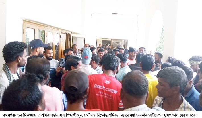 মৌলভীবাজারের কমলগঞ্জ উপজেলার ডানকান ব্রাদার্স নিয়ন্ত্রিত শমশেরনগর ক্যামেলিয়া ডানকান ফাউন্ডেশন হাসপাতালে চিকিৎসাধীন অবস্থায় ৭ম শ্রেণিতে পড়–য়া ঐশী রবিদাস নামে এক চা শ্রমিক সন্তানের মৃত্যুকে কেন্দ্র করে চা শ্রমিক ও এলাকাবাসীর মাঝে টানটান উত্তেজনা বিরাজ করছে। ভূল চিকিৎসায় ঐ শিক্ষার্থীর মৃত্যুর অভিযোগ তুলে চা শ্রমিকরা বিক্ষোদ্ধ হয়ে হাসপাতাল ঘেরাও করে ভাংচুর করে চিকিৎসকসহ স্টাফদের অবরুদ্ধ করে রাখেন। খবর পেয়ে পুলিশ এসে পরিস্থিতি নিয়ন্ত্রণে আনে। এক পর্যায়ে হাসপাতালের কর্তব্যরত চিকিৎসক পদত্যাগ করে পুলিশ প্রহরায় হাসপাতাল ত্যাগ করেন। এ ঘটনায় চা শ্রমিকদের মাঝে উত্তেজনা বিরাজ করছে।