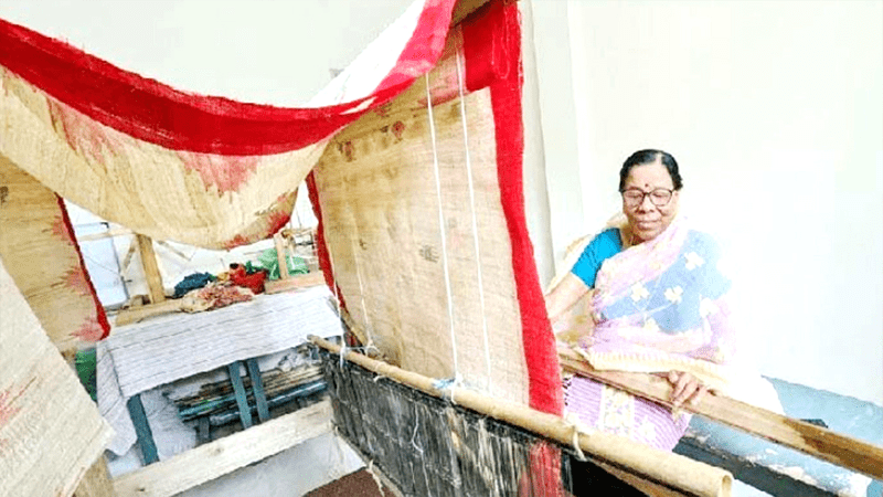 মৌলভীবাজার কমলগঞ্জে দেশে প্রথমবারের মতো কলাগাছের তন্তু থেকে সুতা তৈরি করে মণিপুরি শাড়ির তৈরী করে আলোচনায় আসেন রাধাবতী দেবী।