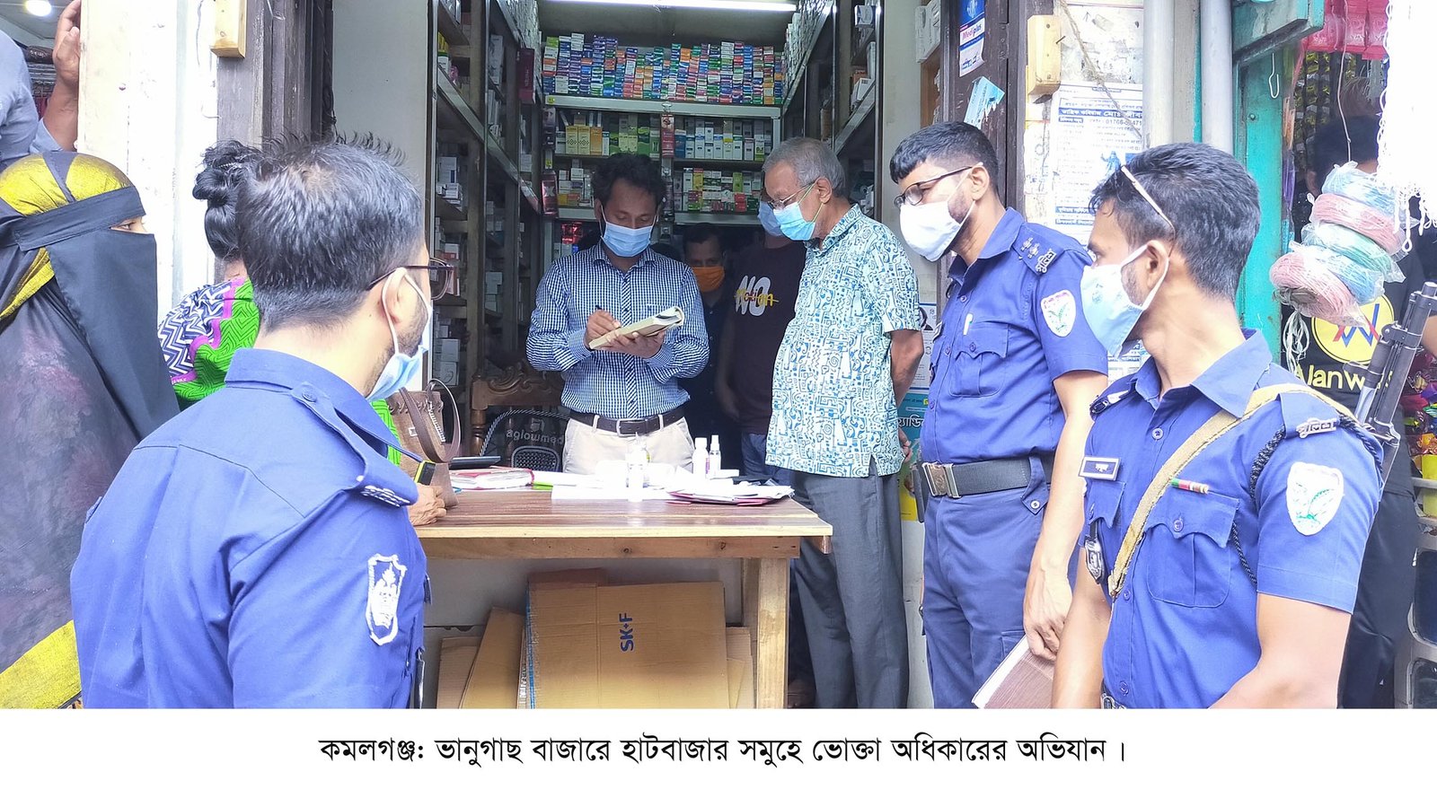 জাতীয় ভোক্তা অধিকার সংরক্ষণ অধিদপ্তর, মৌলভীবাজার জেলা কার্যালয় এর সহকারী পরিচালক মো. আল-আমিন এর নেতৃত্বে কমলগঞ্জ থানার পুলিশের সহযোগিতায় তদারকি অভিযানে ম‚ল্য তালিকা না রাখা, মেয়াদ উত্তীর্ণ ঔষধ, অতিরিক্ত দামে খাদ্য পণ্য বিক্রয় করা, অস্বাস্থ্যকর পরিবেশে খাদ্য পণ্য তৈরি করাসহ বিভিন্ন অনিয়মের দায়ে ভানুগাছ বাজারের ষ্টেশন রোড, মাধবপুর রোডসহ বিভিন্ন জায়গায় নিত্য প্রয়োজনীয় দ্রব্য সামগ্রীর প্রতিষ্ঠান, ফার্মেসী এবং অন্যান্য দোকানে মনিটরিং ও সচেতনতাম‚লক কার্যক্রম পরিচালনা করা হয়। মাধবপুর রোডে অবস্থিত ফাস্ট টাইম বেকারীকে ১০ হাজার টাকা, ভানুগাছ বাজারে অবস্থিত দি সেন্ট্রাল ফার্মেসীকে ৩ হাজার টাকা, ষ্টেশন রোডে অবস্থিত লোকনাথ ষ্টোরকে ১ হাজার টাকা জরিমানা আরোপ ও তা আদায় করা হয়। অভিযানে ৩ টি প্রতিষ্ঠানকে ১৪ হাজার টাকা জরিমানা করা হয়।