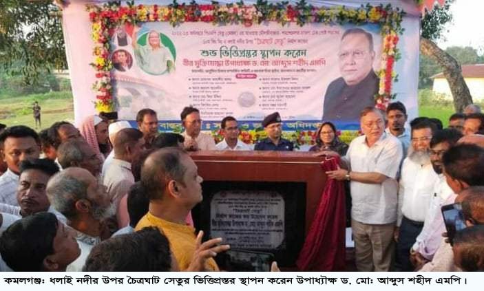 কমলগঞ্জ উপজেলার মৌলভীবাজার-শমশেরনগর চাতলা চেক পোস্ট সড়কের ১০ কিলোমিটার সড়কের ধলাই নদীর ওপর ২২ কোটি ৩৯ লাখ টাকা ব্যায়ে "চৈত্রঘাট সেতুর " নির্মাণ কাজের ভিত্তিপ্রস্থর স্থাপন করা হয়েছে। রোববার (১৫ অক্টোবর) সন্ধ্যায় সড়ক ও জনপথ অধিদপ্তরের বাস্তবায়নে উপজেলার রহিমপুর ইউনিয়নের চৈত্রঘাট বাজারে প্রধান অতিথি হিসেবে উপস্থিত থেকে সেতুর ভিত্তিপ্রস্তর স্থাপন করেন সাবেক চিফ হুইপ উপাধ্যক্ষ ড. মো. আব্দুস শহীদ এমপি। রহিমপুর ইউনিয়ন পরিষদের চেয়ারম্যান ইফতেখার আহমেদ বদরুলের সভাপতিত্বে অনুষ্ঠানে বিশেষ অতিথি ছিলেন মৌলভীবাজারের সড়ক ও জনপথের সড়ক সার্কেলের তত্বাবধায়ক প্রকৌশলী মো. জাহাঙ্গীর আলম, সওজ মৌলভীবাজার এর নির্বাহী প্রকৌশলী মো. জিয়া উদ্দিন, কমলগঞ্জ উপজেলা আওয়ামী লীগের সভাপতি আছলম ইকবাল মিলন, উপজেলা সহকারী কমিশনার (ভূমি) রইছ আল রেজুওয়ান, কমলগঞ্জ উপজেলা পরিষদের মহিলা ভাইস চেয়ারম্যান বিলকিস বেগম, কমলগঞ্জ পৌরসভার মেয়র মো: জুয়েল আহমদ, কমলগঞ্জ থানার ভারপ্রাপ্ত কর্মকর্তা সঞ্জয় চক্রবর্তী, উপজেলা দুর্নীতি প্রতিরোধ কমিটির সভাপতি ইমতিয়াজ আহমেদ বুলবুল প্রমুখ।