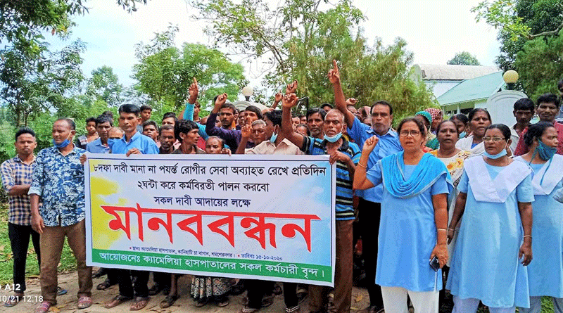 এসব দাবির মধ্যে সরকারি বিধি মোতাবেক হাসপাতালের সুযোগ-সুবিধা প্রদান, বাসস্থান, অস্থায়ীদের চাকুরী স্থায়ীকরণ, সাপ্তাহিক মজুরি ভিত্তিক কর্মচারীদের মাসিক বেতনভূক্ত করা, ৩০ শতাংশের উপর ইনক্রিমেন্ট বর্ধিতকরণ, গ্র্যাচুইটি প্রদান, অস্থায়ী ও স্থায়ী কর্মচারীদের সমান মজুরি ও যথাযথভাবে রেশন-চাপাতা প্রদান সহ ৮ দফা দাবি নামা হাসপাতাল পরিচালক বরাবরে প্রদান করা হয়। দাবি দাওয়া বাস্তবায়ন না হওয়ায় প্রথমে গত ১৫ অক্টোবর থেকে প্রতিদিন ২ ঘন্টা করে কর্মবিরতি পালন করেন কর্মচারীরা। বুধবারের মানববন্ধনে বক্তব্য রাখেন নার্স মেরি রাল্ফ, মুন্না চাষা, রাজু বর্মা, লক্ষিন্দর বৈদ্য, সুদর্শন তেলী প্রমুখ।