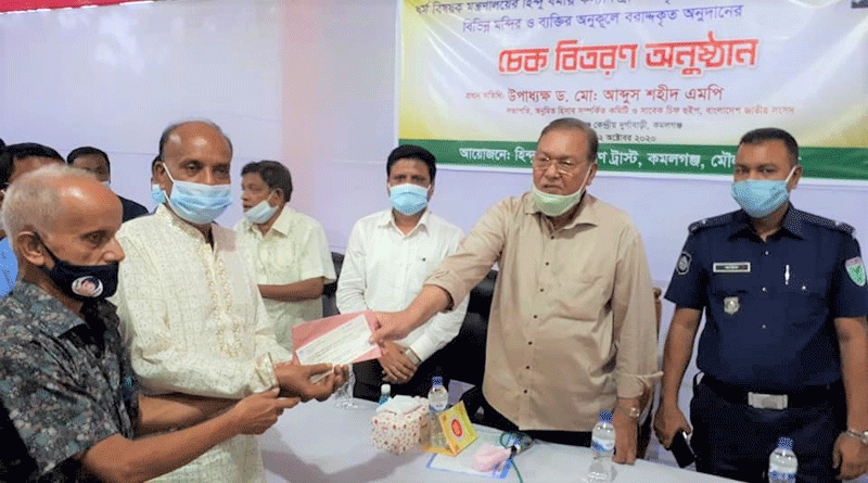 ২২ অক্টোবর বৃহস্পতিবার বিকেলে ভানুগাছ বাজারস্থ কমলগঞ্জ কেন্দ্রীয় দুর্গাবাড়িতে আয়োজিত অনুষ্ঠানে প্রধান অতিথি হিসেবে উপস্থিত থেকে অনুদানের চেক বিতরণ করেন সাবেক চিফ হুইপ ও অনুমিত হিসাব সম্পর্কিত কমিটির সভাপতি, মুক্তিযোদ্ধা উপাধ্যক্ষ ড. মোঃ আব্দুস শহীদ এমপি।
