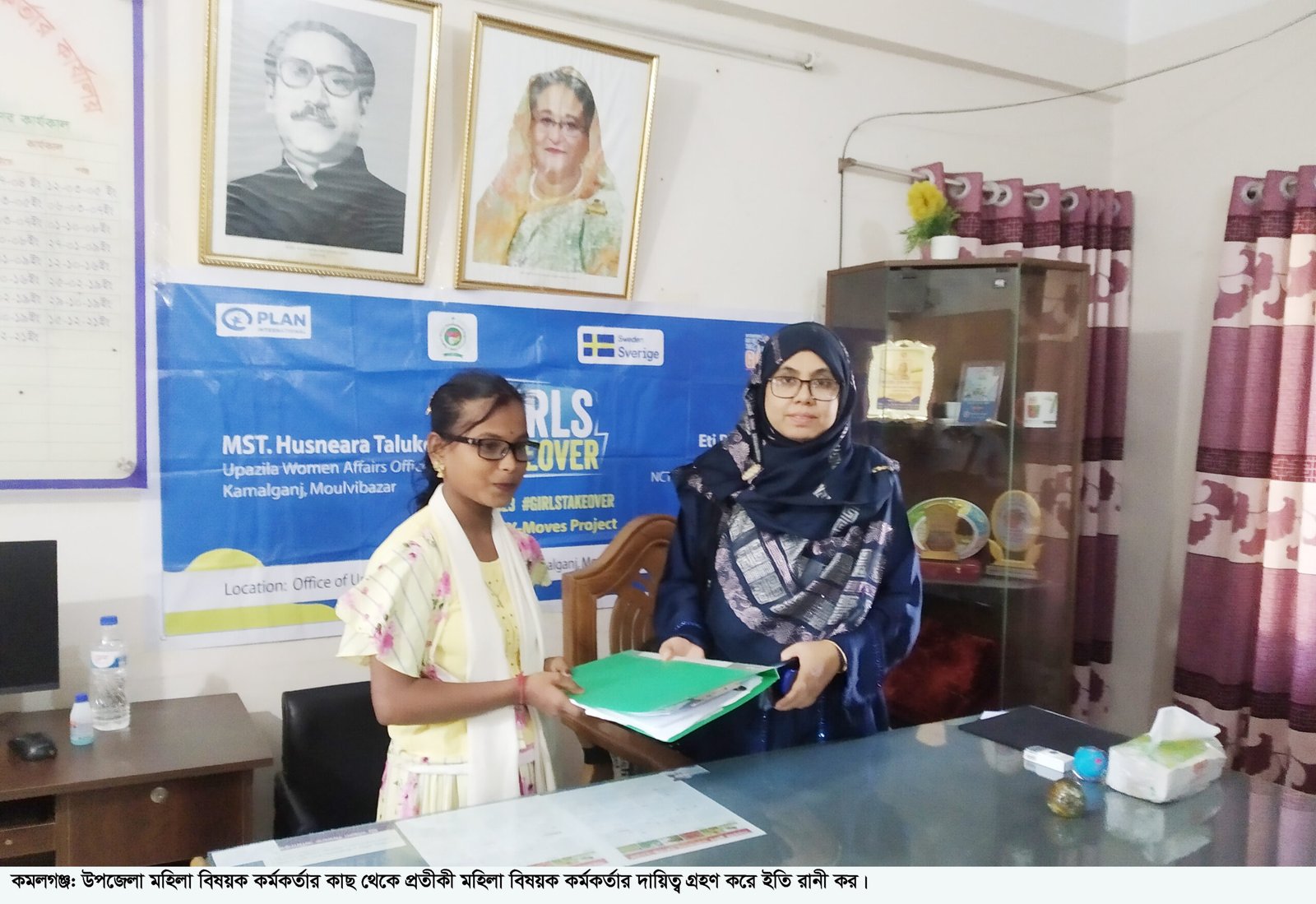 গার্লস টেকওভার মেয়েদের অধিকারে বিনিয়োগ করুন: আমাদের নেতৃত্ব, আমাদের কল্যাণ– এই প্রতিপাদ্যকে সামনে রেখে প্ল্যান ইন্টারন্যাশনাল বাংলাদেশের সহযোগিতা ও রিলায়েন্ট উইমেন ডেভেলপমেন্ট অর্গানাইজেশন (আরডব্লিউডিও) এর উদ্যোগে উপজেলা মহিলা বিষয়ক কর্মকর্তার কার্যালয়ে এ আয়োজন করা হয়।