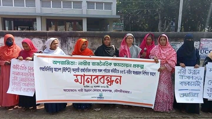 কমলগঞ্জে নারী উন্নয়ন ফোরামের মানববন্ধন ও স্মারকলিপি প্রদান