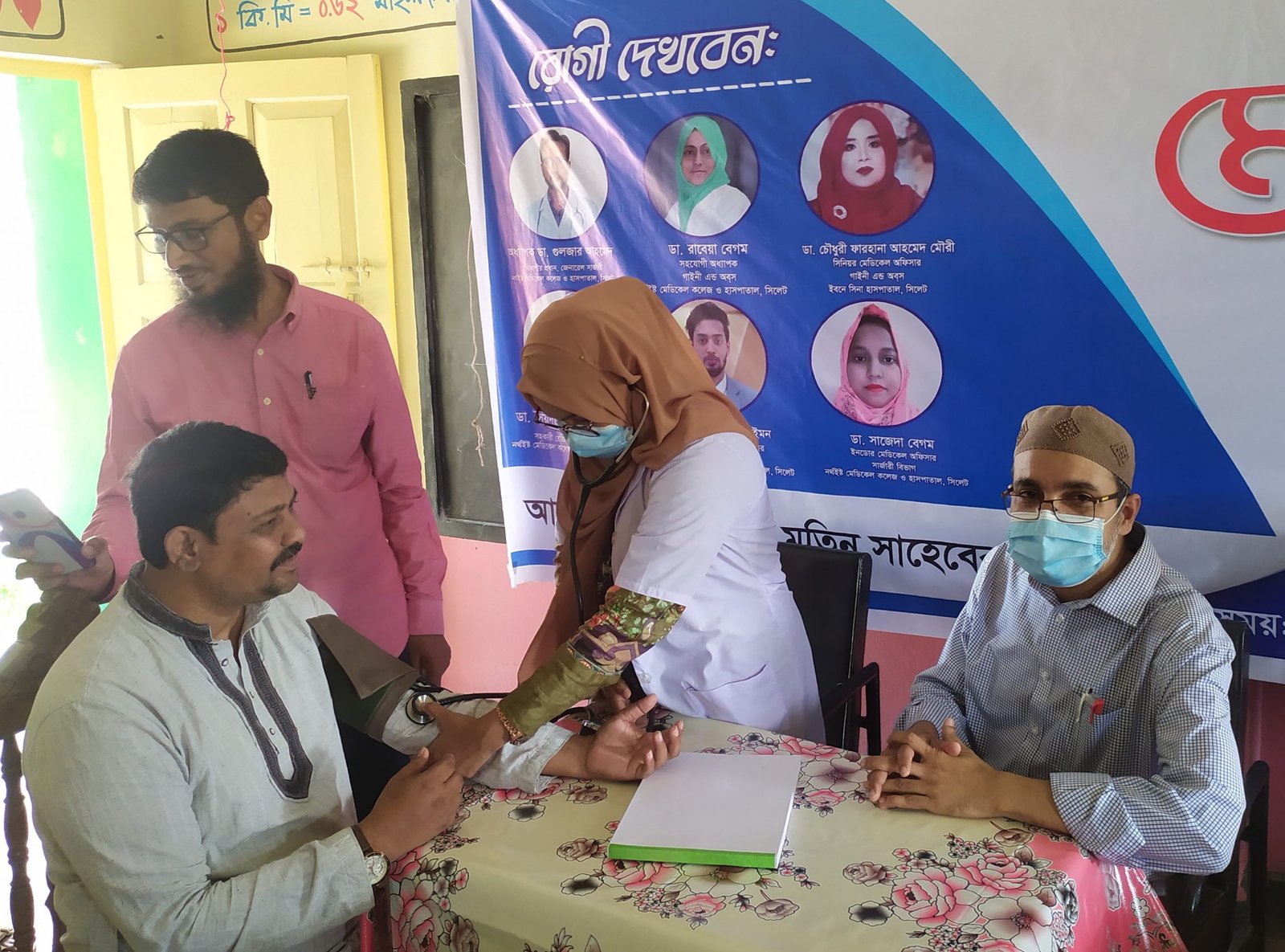ফ্রি মেডিকেল ক্যাম্পে আগত রোগীদের চিকিৎসা সেবা প্রদান করেন অধ্যাপক ডা. গুলজার আহমেদ, ডা. রাবেয়া বেগম, ডা. চৌধুরী ফারহানা আহমেদ, ডা. সৈয়দা তারান্নুমা ফারহিন, ডা. আমিনুর রহমান ইমন ও ডা. সাজেদা বেগম।