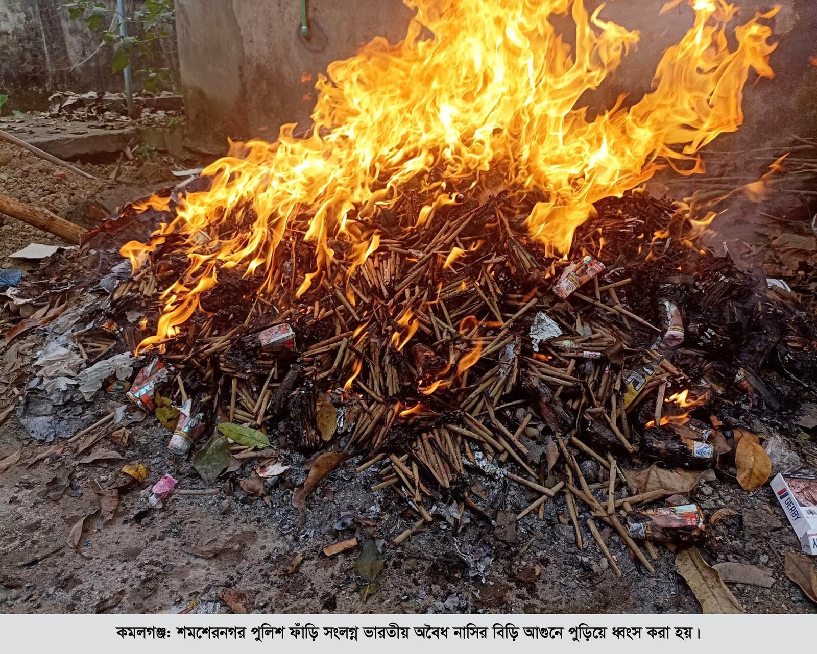 মৌলভীবাজারের কমলগঞ্জ উপজেলার শমশেরনগর পুলিশ ফাঁড়ি কর্তৃক জব্দকৃত অবৈধ ভারতীয় ১ লক্ষ ৩৮ হাজার নাসির বিড়ি আগুনে পুড়িয়ে ধ্বংস করা হয়েছে।