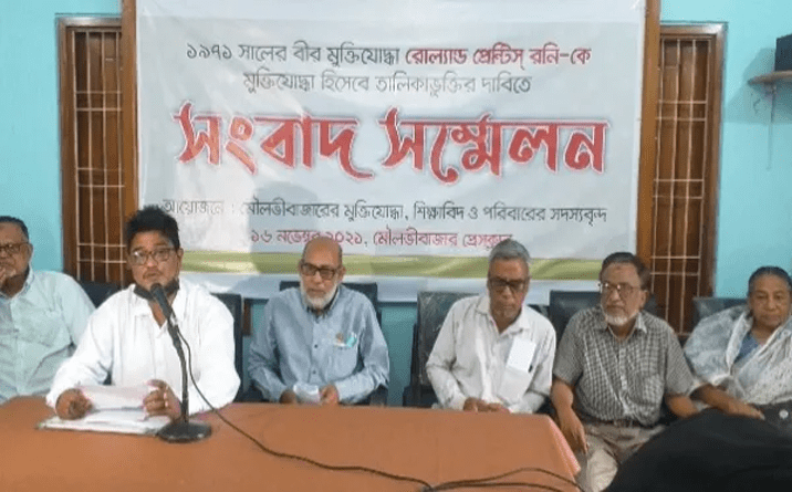 কমলকন্ঠ রিপোর্ট ।। একাত্তর সালের বীর মুক্তিযোদ্ধা রোল্যান্ড প্রেন্টিস রনিকে মুক্তিযোদ্ধা হিসেবে তালিকাভুক্তির দাবিতে সংবাদ সম্মেলন অনুষ্ঠিত হয়েছে। আজ মঙ্গলবার (১৬ নভেম্বর) সকালে প্রেসক্লাব মিলনায়তনে মৌলভীবাজারের মুক্তিযোদ্ধা, শিক্ষাবিদ ও পরিবারের সদস্যদের পক্ষ থেকে এই সংবাদ সম্মেলন করা হয়।
