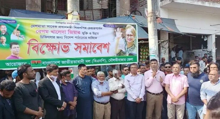 সোমবার বিএনপির কেন্দ্রীয় কর্মসূচি বিক্ষোভ সমাবেশে সভাপতিত্ব করেন মৌলভীবাজার জেলা বিএনপির সহ–সভাপতি এম. এ মুকিত এবং প্রধান অতিথি হিসেবে বক্তব্য রাখেন মৌলভীবাজার জেলা বিএনপির সাধারণ সম্পাদক মিজানুর রহমান।
