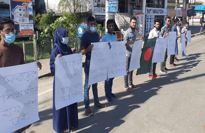 মৌলভীবাজার নিরাপদ সড়কের দাবিতে সাধারণ শিক্ষার্থীদের মানববন্ধন