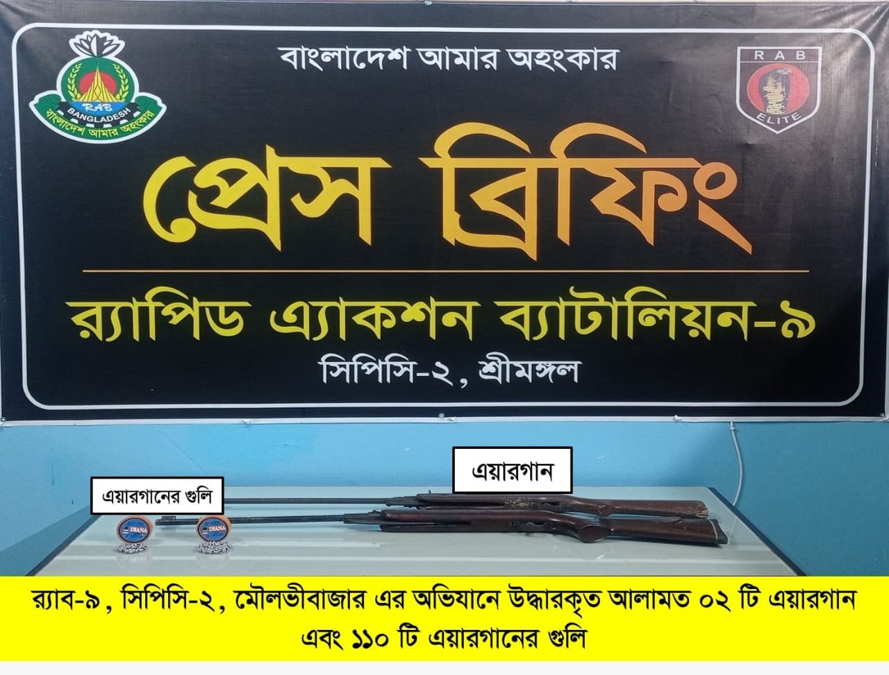 র‍্যাবের অভিযানে ১১০টি গুলিসহ ২টি আগ্নেয়াস্ত্র উদ্ধার