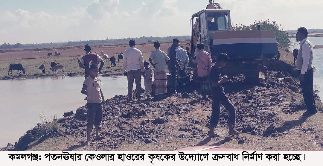 কমলগঞ্জে বোরো চাষের জন্য কৃষকের উদ্যোগে ক্রসবাঁধ নির্মাণ