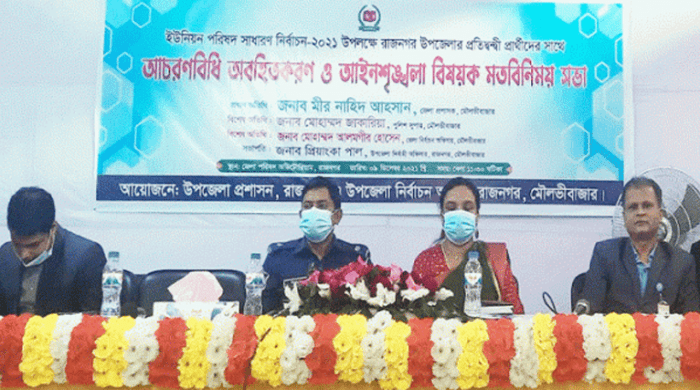 কমলকন্ঠ রিপোর্ট ।। মৌলভীবাজারের রাজনগরে চতুর্থ ধাপে ইউনিয়ন পরিষদ (ইউপি) নির্বাচন উপলক্ষে চেয়ারম্যান, সংরক্ষিত সদস্য ও সাধারণ সদস্য প্রার্থীদের নিয়ে নির্বাচনী আচরণবিধি অবহিতকরণ ও আইনশৃঙ্খলা বিষয়ক মতবিনিময় সভা অনুষ্ঠিত হয়েছে।