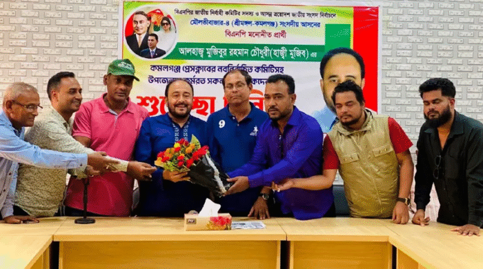 কমলকন্ঠ ডেস্ক ।। কমলগঞ্জে সাংবাদিকদের সাথে শুভেচ্ছা বিনিময় করেন মৌলভীবাজার-৪ (শ্রীমঙ্গল-কমলগঞ্জ) আসনের বিএনপি মনোনীত প্রার্থী ও বিএনপি জাতীয় নির্বাহী বমিটির সদস্য আলহাজ্ব মুজিবুর রহমান চৌধুরী (হাজী মুজিব)। রোববার ৯ নভেম্বর