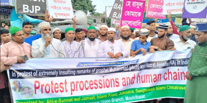 কমলকন্ঠ ডেস্ক।। ভারতে মহানবী হযরত মুহাম্মদ (সাঃ)-কে নিয়ে কটুক্তির প্রতিবাদে মৌলভীবাজারের কমলগঞ্জ উপজেলার শমশেরনগর ও পতনঊষার শহীদনগর বাজারে বিক্ষোভ মিছিল অনুষ্ঠিত হয়ছে। শুক্রবার (১০ জুন) বাদ জুমা উপজেলার শহীদনগর বাজারে read more