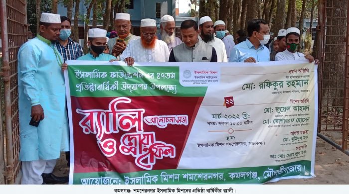 কমলকন্ঠ ডেস্ক ।। কমলগঞ্জ উপজেলার শমশেরনগর ইসলামিক ফাউন্ডেশনের ৪৭ তম প্রতিষ্ঠা বার্ষিকী পালিত হয়েছে। শমশেরনগর ইসলামিক মিশন এর উদ্যোগে ২২ মার্চ মঙ্গলবার সকাল সাড়ে ১০ টায় র্যালী শেষে ইসলামিক মিশন