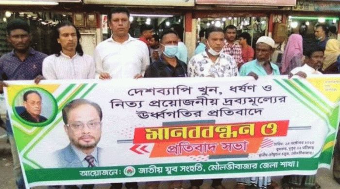 কমলকন্ঠ রিপোর্ট ।। সাম্প্রতিক সারাদেশে চলমান ধর্ষণ ও নারীর প্রতি সহিংসতার নিন্দা জানিয়ে প্রত্যেকটি অপরাধের সাথে জড়িত থাকা সকল অপরাধীদের আইনের আওতায় এনে দৃষ্টান্তমূলক শাস্তির দাবি জানিয়ে রোববার সকালে মৌলভীবাজার